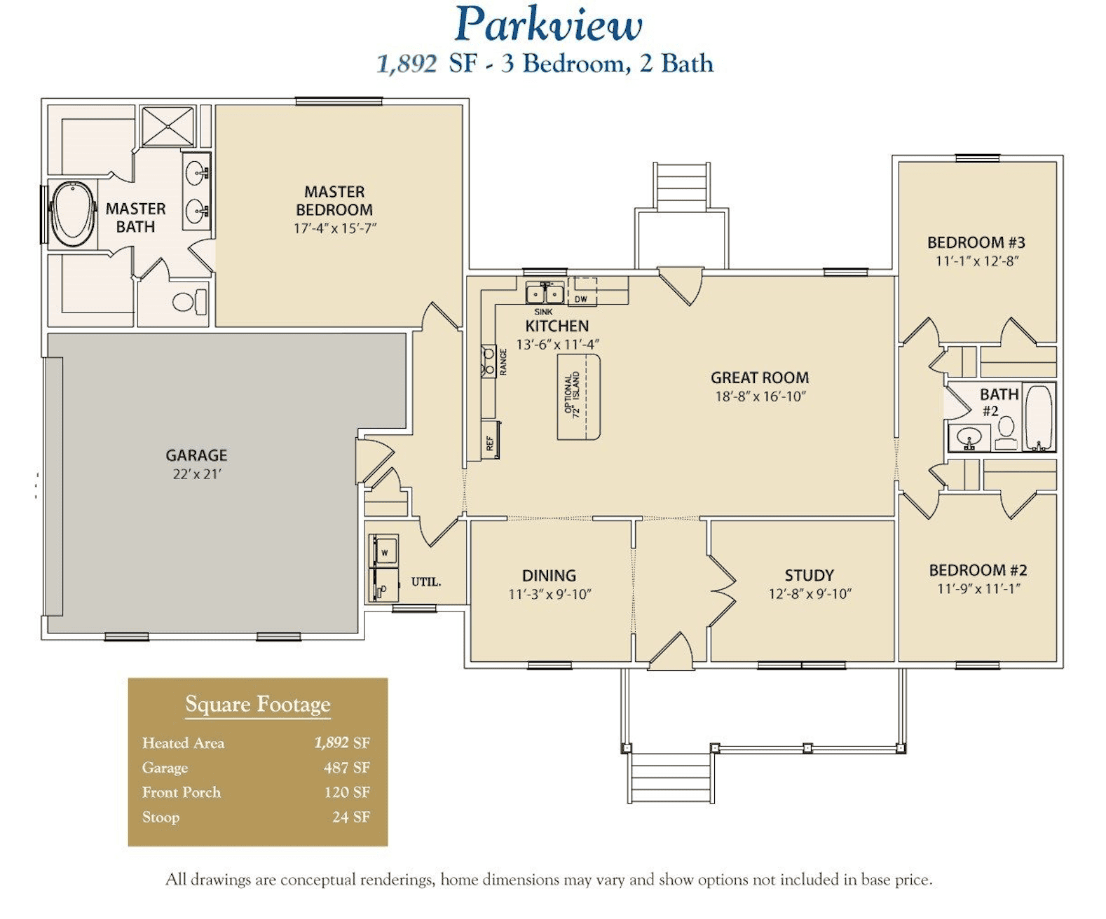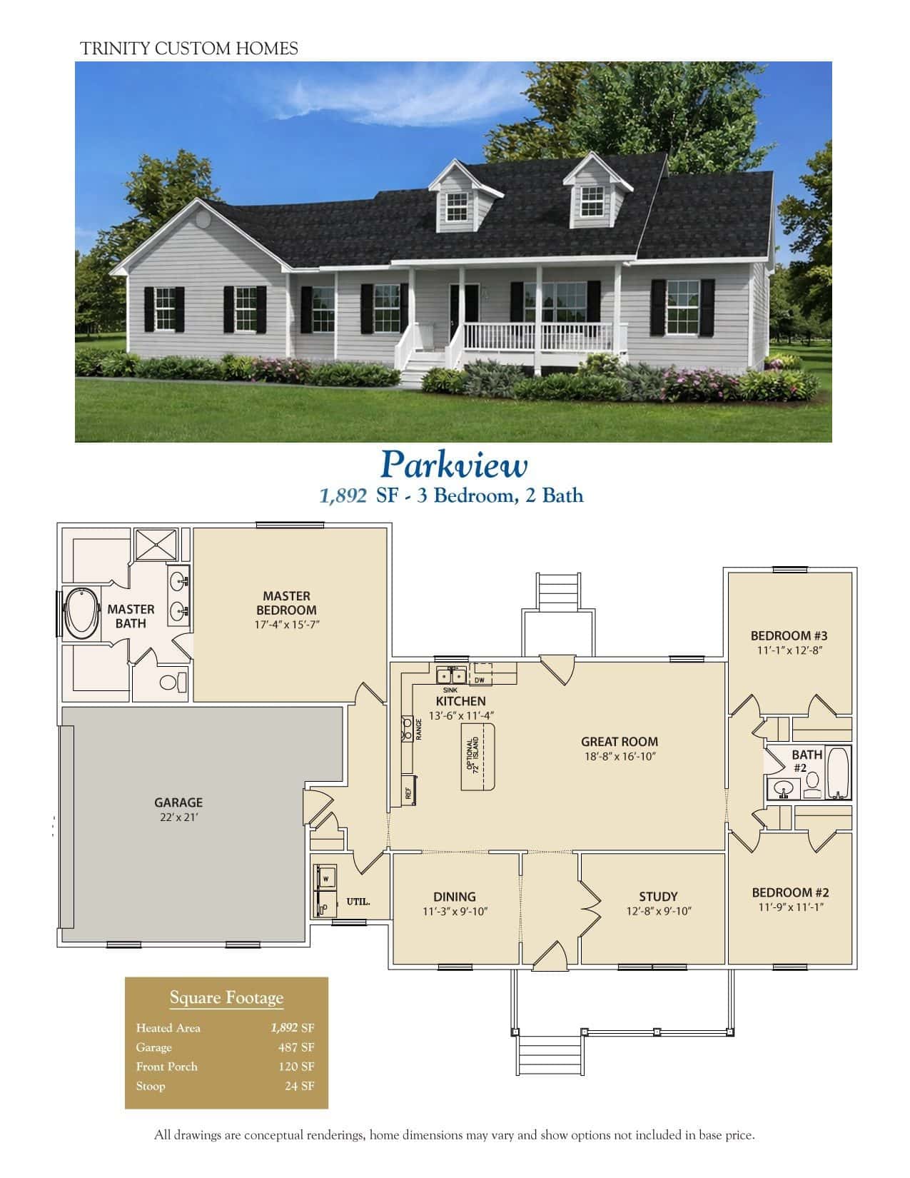Features: Covered Front Porch, Split Plan, Study/office, 2 Car Garage. Parkview II is Available With 2,549 Sf, With 1/2 Bath And Optional 4th Bedroom