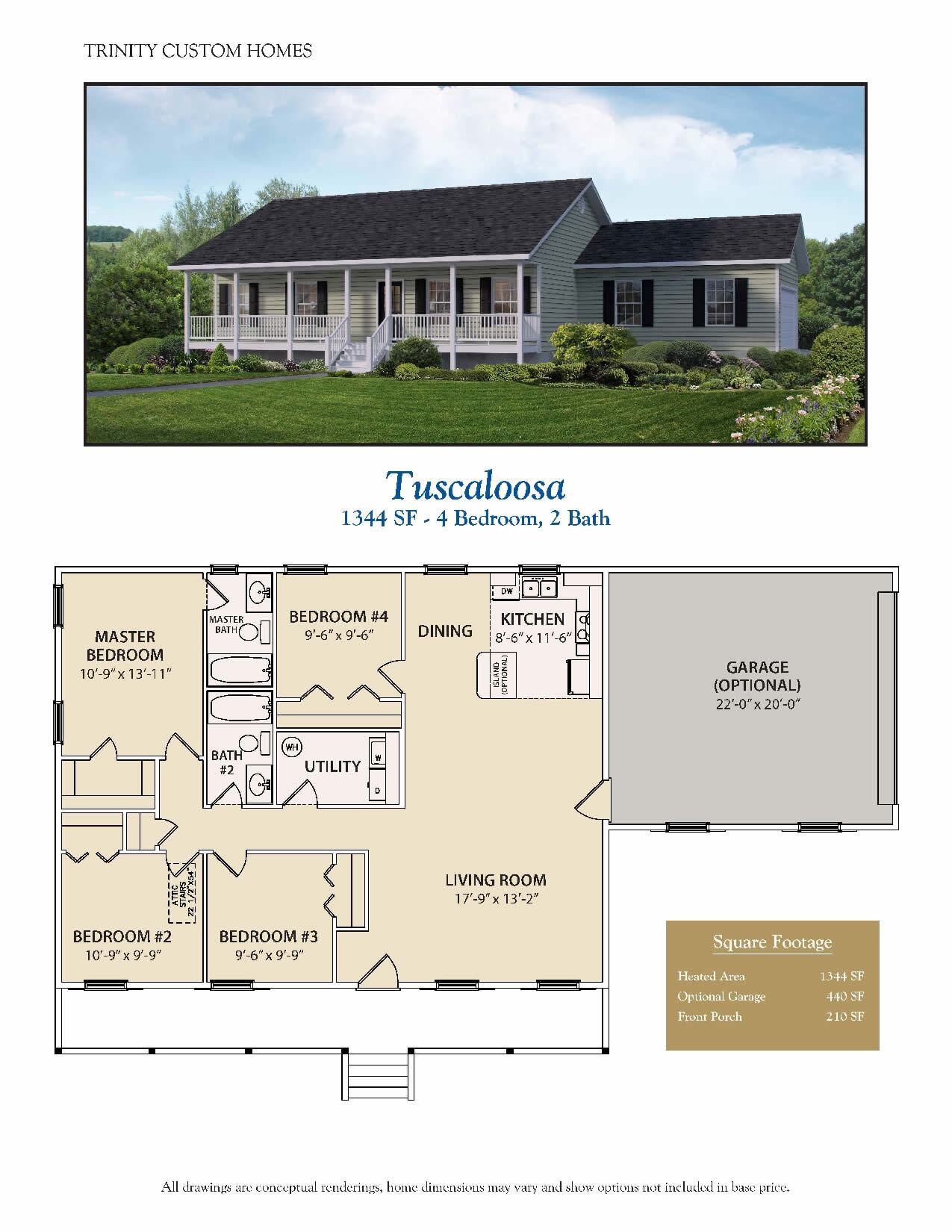 elcome to Trinity Custom Homes, where dreams come to life in the form of exquisite residences. Allow us to introduce you to the “Tuscaloosa” – a one-story haven thoughtfully designed to embody comfort, functionality, and style.